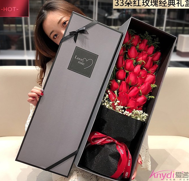 【包 装】:黑色雾面包装纸单面包装。黑色纱网外包装,红色印字缎带蝴蝶结束扎。灰色挚爱之心长方形礼盒盛放。
