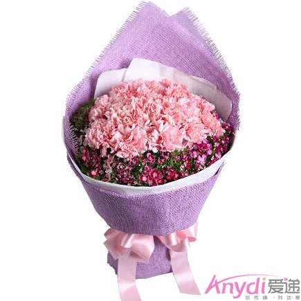 【包 装】内层白色皱纸,外层紫色细格麻网,粉色缎带花结