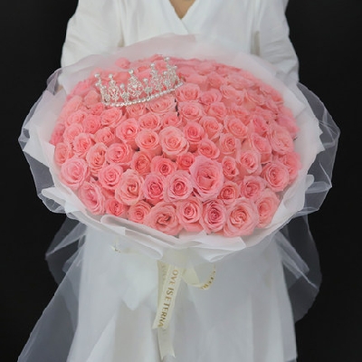 【材 料】:精选99枝戴安娜粉玫瑰+皇冠。